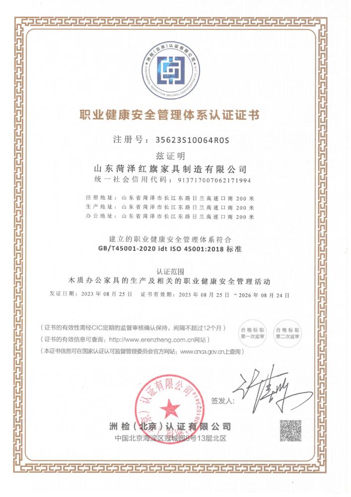 職業(yè)健康安全管理體系認(rèn)證證書
